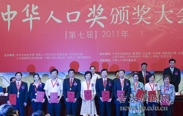 第七届中华人口奖颁奖仪式于8月22日在人民大会堂举行,该奖授予对我国人口和计划生育事业作出突出贡献的15位人士。其中,前国务院副总理陈慕华、第九届、第十届全国人大副委员长何鲁丽获“特别荣誉奖”,吉林大学党委常务副书记兼副校长王胜今教授作为唯一一位高校学者获得“科学技术奖”,并赴京领奖。