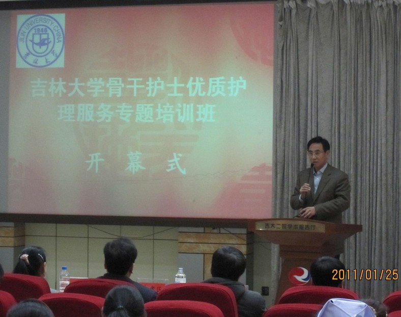 125日,吉林大学骨干护士优质护理服务专题培训班在白求恩第二医院开班。吉林省卫生厅医政处处长郭齐祥、副调研员李春英以及吉林大学护理学院、校内各医院主管领导参加了培训班开幕式。