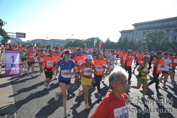 10月16日,2011年北京国际马拉松赛从雄伟的天安门广场鸣枪出发。在浩荡的人群中,有三名吉林大学普通本科生的身影,他们是建设工程学院08级7班的王金(全程)、09级5班的冯玉鹏(全程)以及地球探测科学与技术学院08级的王德智(半程)。这也是吉大普通本科生继2010年之后第二次参加北京马拉松赛。