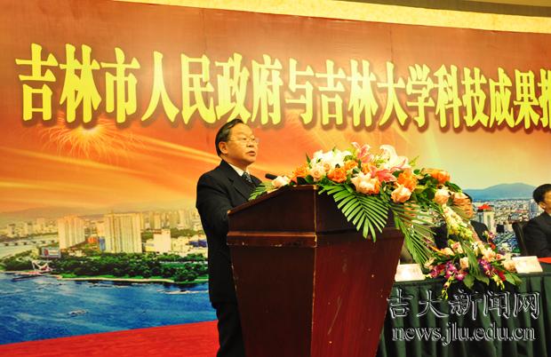 赵静波在致辞中代表中共吉林市委、吉林市人民政府表示将在更大范围、更高层次、更宽领域上加强与吉林大学的合作。