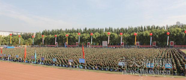 一簇簇迷彩绿,映着一张张笑脸;一张张笑脸,呼应着一颗颗憧憬的心。9月17日,来自各地的万余名新生齐聚中心校区体育场,参加吉林大学2011年新生开学典礼。