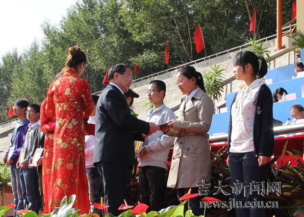 典礼上,副校长陈岗宣读了《吉林大学关于颁发2011级优秀新生入学奖学金的决定》,共有166名高考成绩优异的新生获得奖学金,党委书记陈德文为优秀新生入学奖学金获得者代表颁奖。
