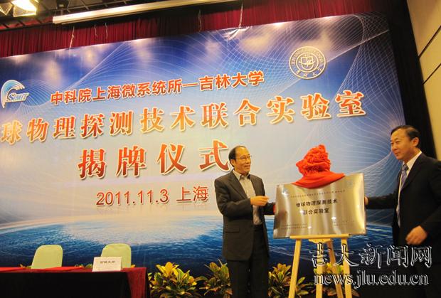 11月3日,吉林大学-中国科学院上海微系统与信息技术研究所(简称“中科院上海微系统所”)地球物理探测技术联合实验室在上海正式揭牌,吉林大学常务副校长赵继与中科院上海微系统所书记、副所长齐鸣共同为实验室揭牌。