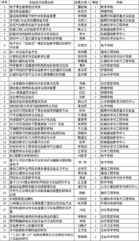实验室与设备管理处有关负责人,向评审委员会汇报了吉林大学2010年实验技术成果奖初评结果,然后评审委员会主任委员宣布了评审工作细则、评审组组长名单,并通报了评审组推荐的候选奖项的数额。接下来评审组分组进行评审工作,经过听取项目汇报、审阅材料、分组推选候选项目和全体委员集中投票等几个环节,最终《机械工程CAX实验教学共享平台》等15个项目荣获一等奖、《固体氧化物燃料电池综合测试装置》等32个项目荣获二等奖。