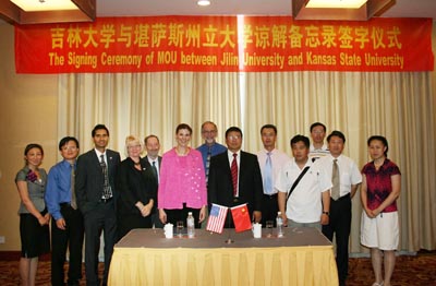 7月6日至7日,美国堪萨斯州立大学资深副校长兼教务长埃普丽尔•梅森女士(April Mason)一行7人访问吉林大学。副校长陈岗会见了代表团成员,双方就两校开展科研、教学合作及孔子学院建设展开了深入讨论,并签署了《吉林大学与美国堪萨斯州立大学谅解备忘录》。