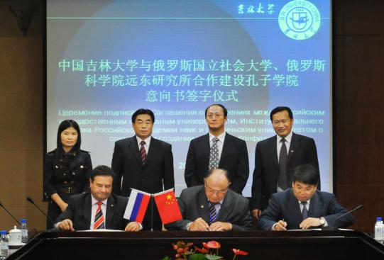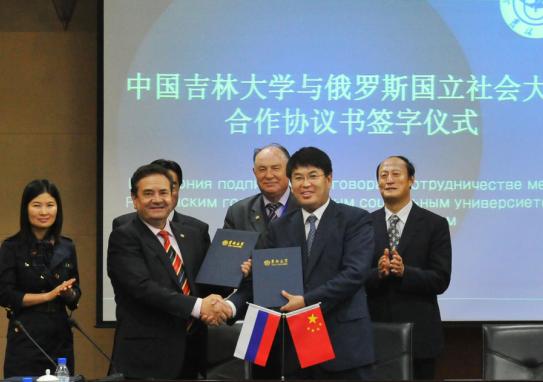 9月3日,俄罗斯国立社会大学校长朱可夫院士和俄罗斯科学院远东研究所所长季塔连科院士访问吉大,并与吉大签署《中国吉林大学与俄罗斯国立社会大学合作协议书》、《中国吉林大学与俄罗斯国立社会大学、俄罗斯科学院远东研究所合作建设孔子学院意向书》和《中国吉林大学与俄罗斯科学院远东研究所联合成立中俄区域合作研究中心协议书》。