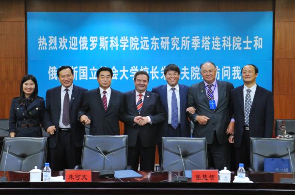 俄罗斯国立社会大学校长朱可夫院士和俄罗斯科学院远东研究所所长季塔连科院士访问吉大