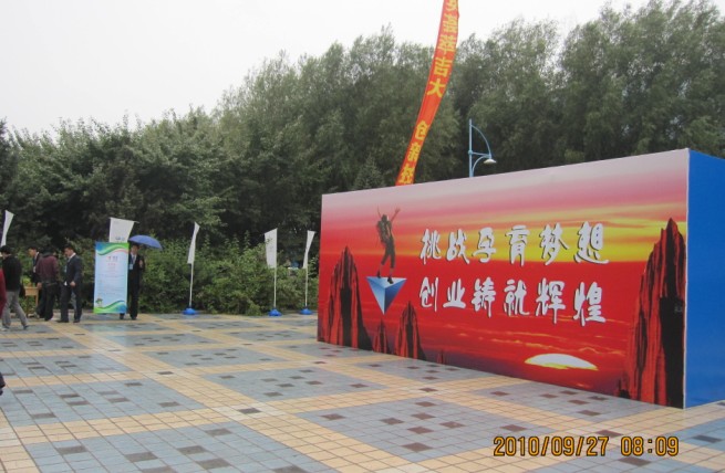 在8月中旬至9月上旬的赛事筹备阶段,党委宣传部负责“挑战杯”竞赛主题口号、主题歌、会徽、吉祥物的征集和评审工作。经过专家和业内人士的认真讨论和筛选,从社会各界征集来的200余件作品中评选出本届大赛的会徽和吉祥物。9月中旬以来,“挑战杯”比赛场地的布展和彩化工作也有条不紊地进行着。25日参赛团队报到第一天,校区内所有接待站、主要路口、沿途道路两旁和比赛场馆的布景、条幅、彩旗、灯杆旗、气球、气冲吉祥物等都已准备齐全,布置妥当,将“挑战杯”色彩和气息带到校园的每一个角落。