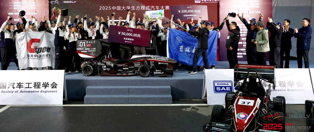 【吉林日报】10月12日,2025中国大学生方程式汽车大赛在河南省智能网联汽车测试基地圆满收官。近60支国内外高校车队经过5天的激烈角逐,最终,吉林大学吉速方程式车队以总分927.61分、领先第二名161分的绝对优势,成功卫冕全国总冠军,实现六连冠,创下七冠王的纪录!