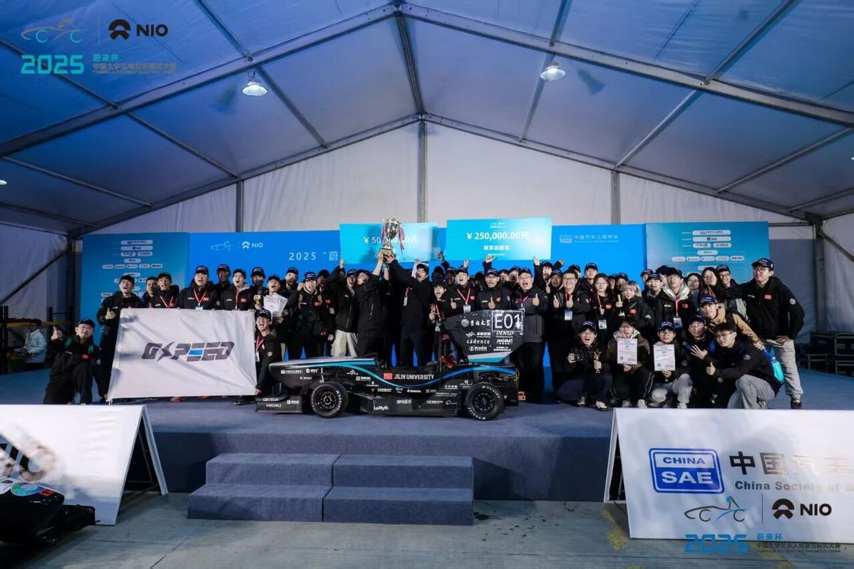 【中国日报网】11月23日,2025“蔚来杯”中国大学生电动方程式汽车大赛在合肥骆岗中央公园圆满落幕。经过7天的激烈较量,吉林大学吉速电动方程式车队以赛车设计第一名、商业报告第一名、高速避障第一名、耐久测试第一名、直线加速第三名的佳绩,成功卫冕全国总冠军;汽车工程学院2022级本科生刘煜坤以1分02秒813的用时,拿下全场最快单圈;学生赛车队指导教师赵迪、赵阳荣获赛事优秀指导教师称号。