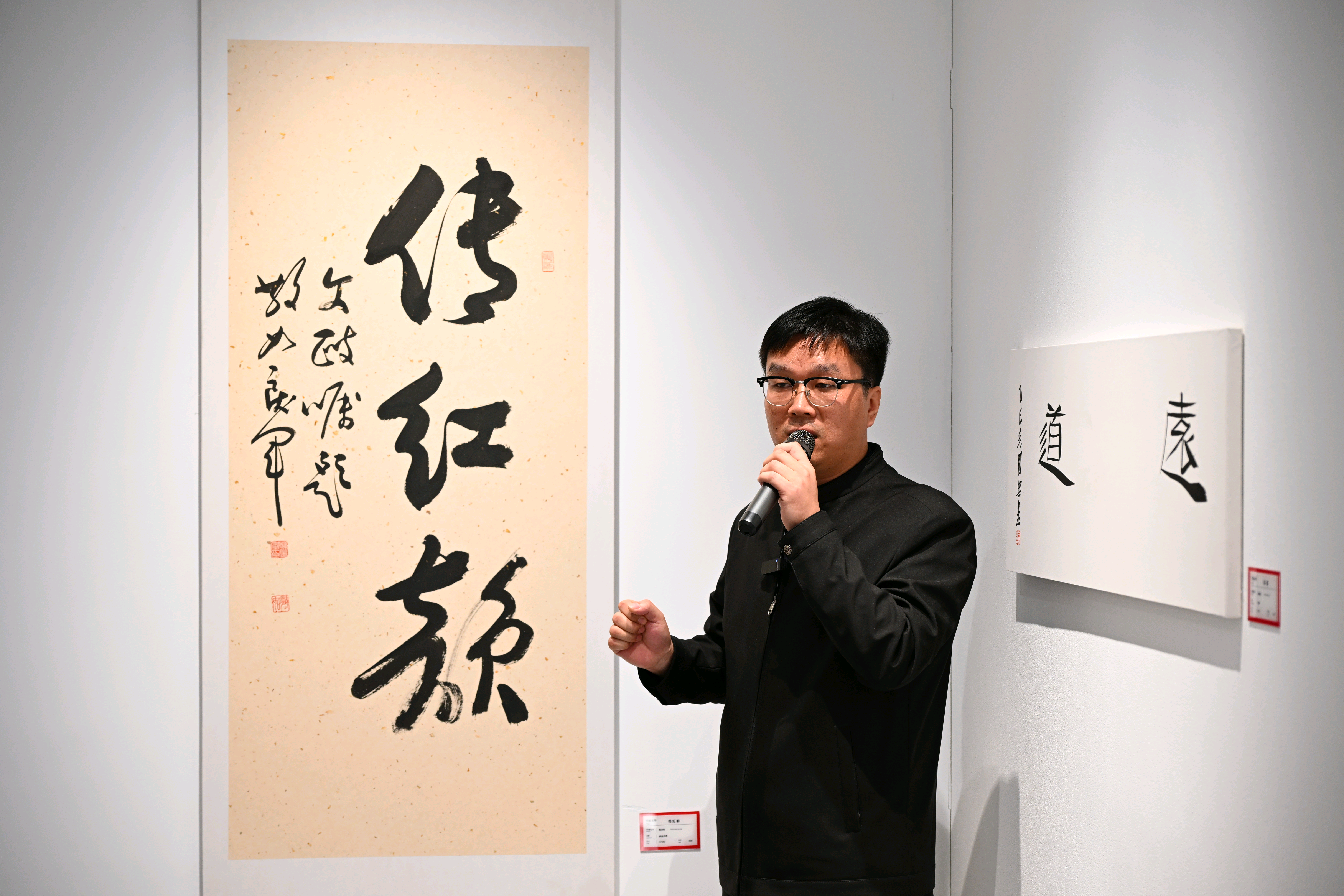 这一由吉林大学党委宣传部主办的展览,聚焦红色文化传承,将革命先辈诗词、新时代奋斗语录等内容融入书法创作,通过条幅、中堂、斗方、扇面等丰富形式呈现。展厅内既有书法家龚文政个人创作作品,还特设了教学示范作品展区,系统呈现从传统碑帖精准临摹到红色主题创新创作的完整教学链条,并打破传统书法展示边界,创新设置了陶瓷书法立体装置区域,让观众互动体验陶瓷艺术与书法艺术相融合的当代活力。