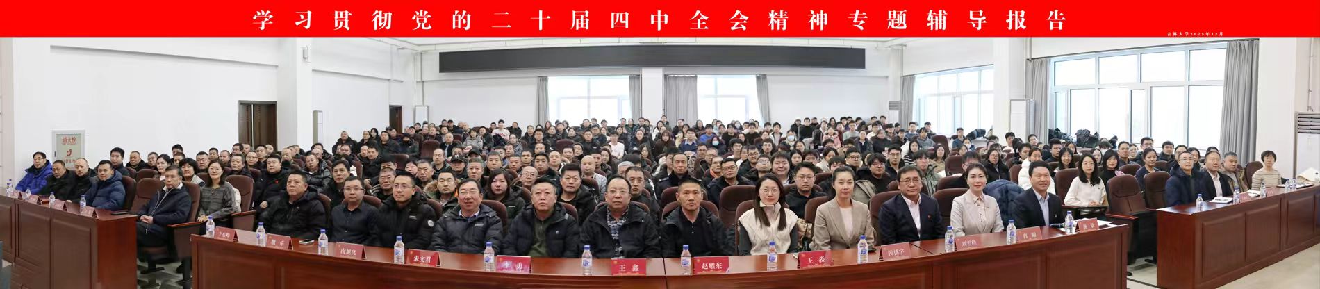 【人民网】日前,由吉林大学保卫处、公共外交学院与物理学院联合主办的“学习贯彻党的二十届四中全会精神”专题辅导报告会在中心校区举行。报告会以“推进国家安全体系和能力现代化的学者担当”为主题,邀请该校“匡亚明学者”杰出教授、公共外交学院院长、国家发展与安全研究院院长肖晞教授作专题辅导,三家主办单位相关负责人及280余名师生代表参会。
