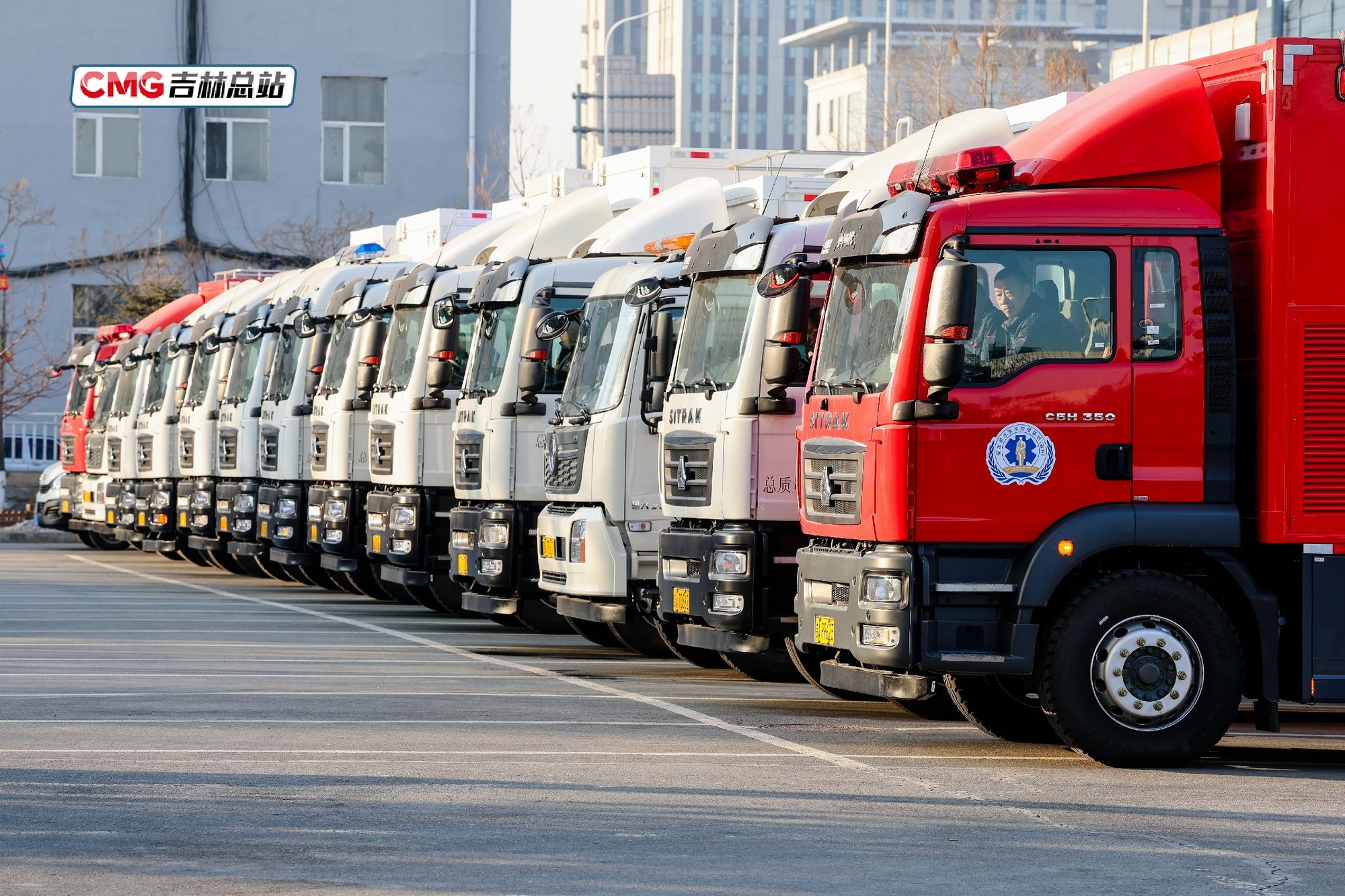 3月9日,吉林大学中日联谊医院国家紧急医学救援基地(吉林)移动医院车队整齐列阵,启动吉琼跨地域联合演练。
