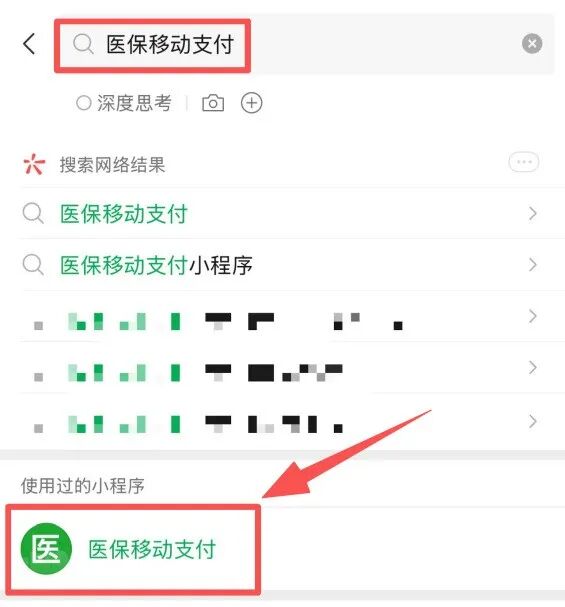 1.在微信中搜索【医保移动支付】小程序。