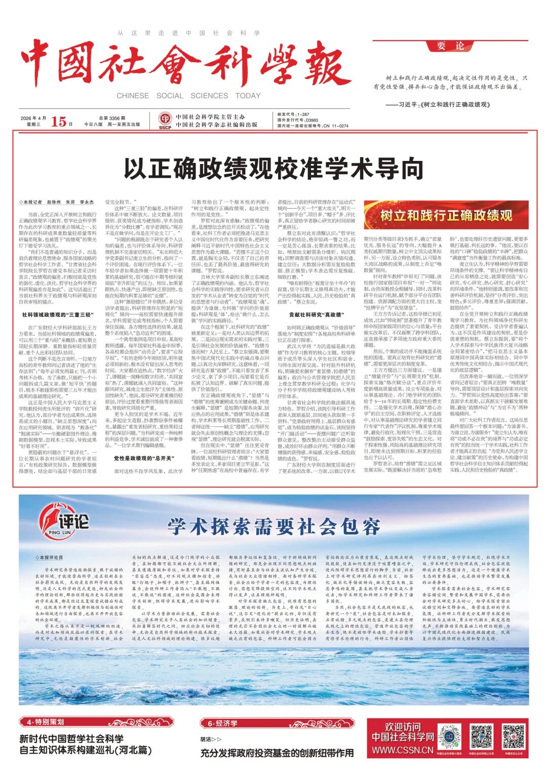 【中国社会科学报】原标题:以正确政绩观校准学术导向