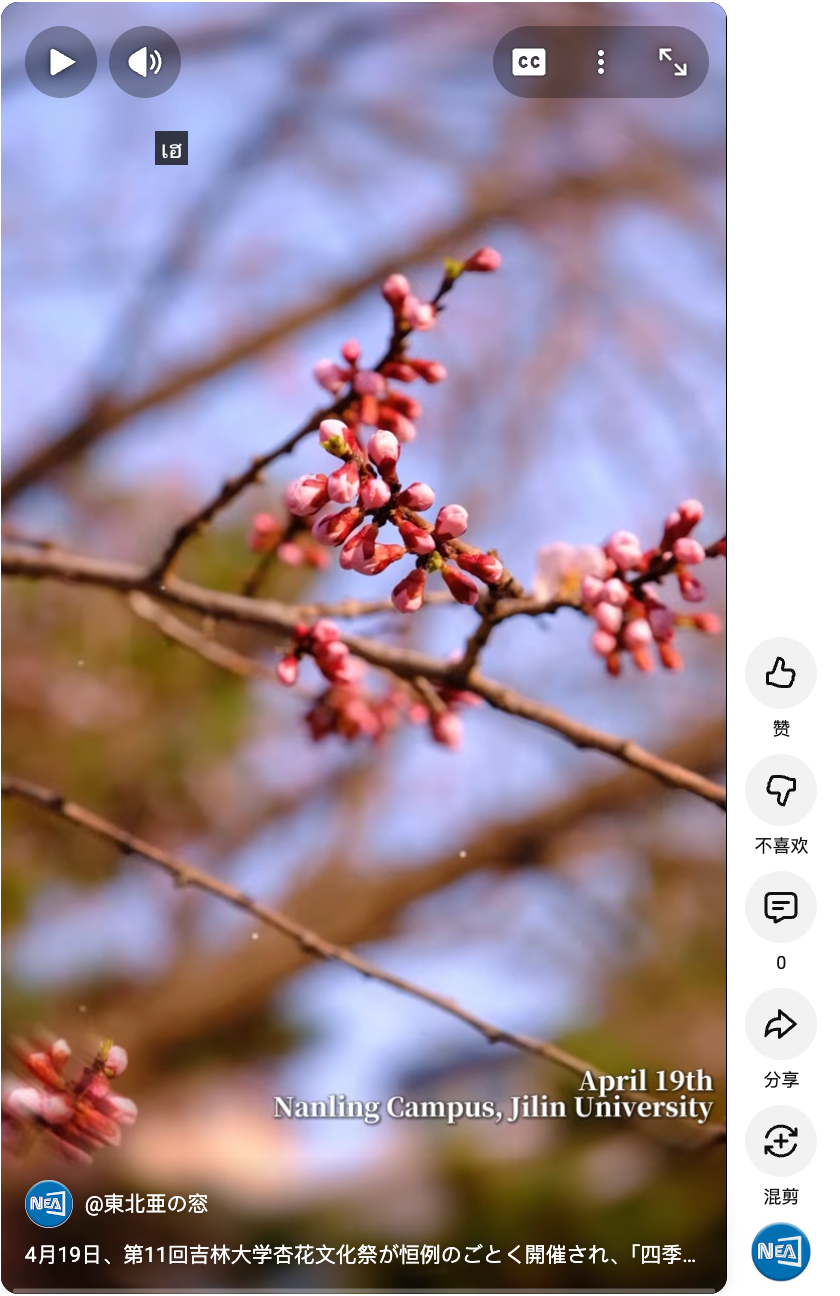 【YouTube“东北亚之窗”】YouTube“东北亚之窗”推送第十一届吉林大学杏花文化节相关内容