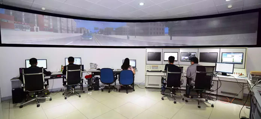 首先,我们来到汽车仿真与控制实验室模拟大厅。