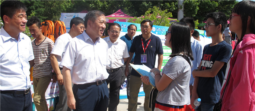 随后,杨振斌一行逐一到每个学院及部门的迎新展位前,了解今年迎新工作整体情况,询问新生及家长入学感受,问候辛勤工作的教职工及学生志愿者。