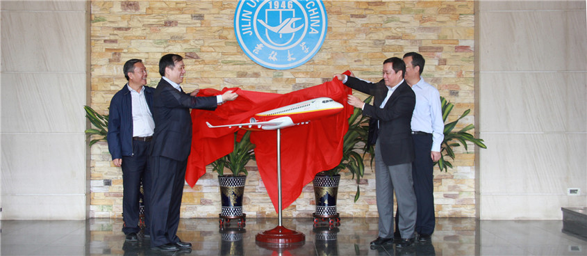 【本站记者 于姗姗 摄影报道】9月14日,吉林大学与中国商用飞机有限责任公司(以下简称“中国商飞公司”)校企合作座谈会在中心校区举行。座谈会开始前,吉林大学校友、中国商飞公司总经理贺东风代表公司向吉林大学赠送飞机模型,吉林大学党委书记杨振斌、副校长韩晓峰代表学校接受赠送并参加座谈会。座谈会由韩晓峰主持。