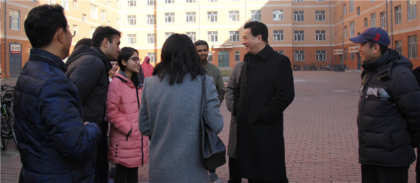 李元元一行来到学校中心校区大学城一公寓和二公寓,认真测量学生寝室、自习室的室内温度,视察了门窗等硬件设施建设情况,并与住在一公寓的国际教育学院的部分留学生和住在二公寓的来自山东大学和大连理工大学的交流生进行亲切交流,了解了他们的学习、生活近况,听取了他们对住宿环境的建议,并就防寒保暖、安全用电、圆满完成学业等方面细节详加叮嘱,希望他们在吉林大学、在异地他乡依然能够感受温暖。