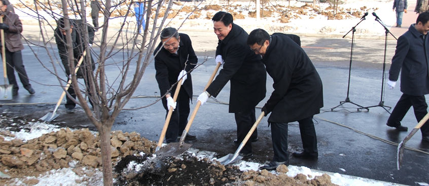一元复始,万象更新。1月6日,吉林大学“栽植希望之树 收获梦想果实”冬季植树活动在鼎新楼东侧广场隆重举行。伴着鼎新楼内教职员工奋发工作、莘莘学子勤学苦读,在校友捐赠的刻有“玉汝于成”的鸡血石周围,校领导李元元、陈岗、韩晓峰、张向东、孙友宏、王利锋及校内相关单位负责人、学生代表50余人一同挥锹铲土植入树坑,为寓意平安幸福、果李芬芳、圆满吉祥的苹果、家杏、李子、王族海棠树苗培实新土,寄托全体吉大人对祖国和母校的深情祝福。