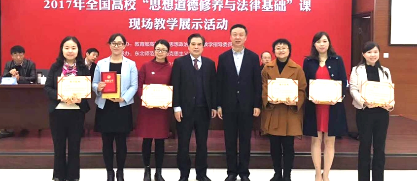 2017年全国高校思想政治理论课教学标兵石瑛(左二)上台领奖