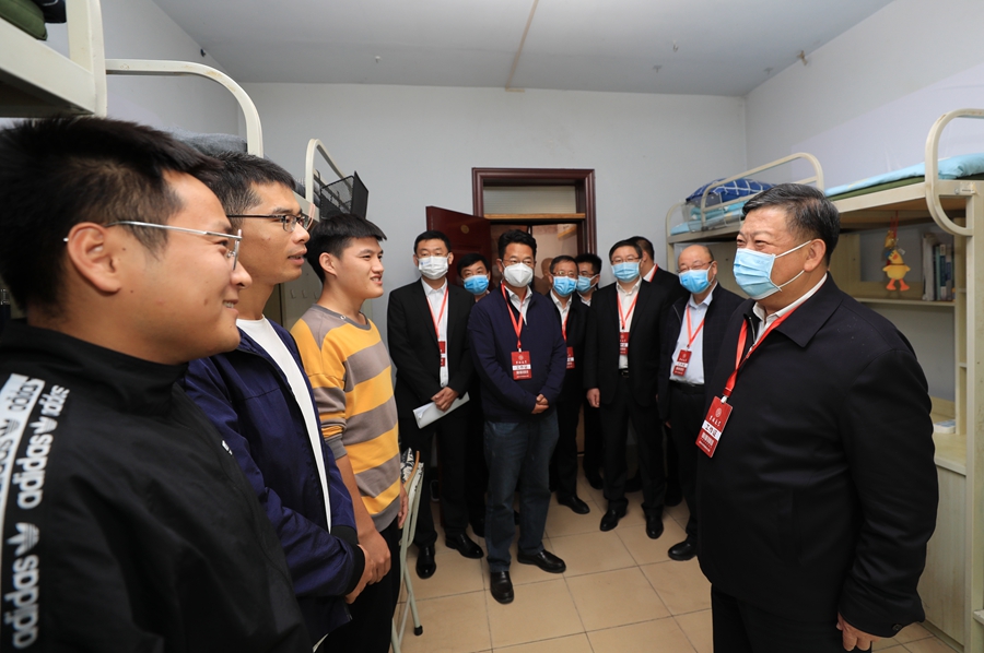 【文/记者 张宏伟 摄/记者 方卫东】金秋校园喜迎学子,丰收季节播洒希望。8月26日,在1万余名2022级研究生新生“入主”吉大之际,校党委书记姜治莹带队先后检查和平校区、南岭校区、南湖校区、中心校区迎新工作,实地督导检查疫情防控工作,慰问一线工作人员和学生志愿者,看望2022级研究生新生。他强调,要坚决守住疫情防控底线,织密防护网、筑牢防火墙,全力确保师生健康安全,同时要提高服务质量,细化迎新工作,营造更加温馨有序的迎新环境,展现吉大良好风貌,让新生满意,让家长放心。