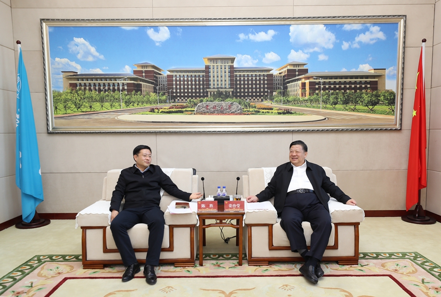姜治莹代表学校和张希校长对陈胜一行来访表示热烈欢迎,对吉林省市场监督管理厅长期以来对吉林大学事业发展的关心支持表示感谢。他表示,新一轮省校共建协议签署以来,吉林大学坚持“在发展中做贡献、在贡献中求发展”的办学理念,积极履行服务社会职责、全面推进校地合作项目,在合作发展平台上呈现新成效,在科研成果转化上实现新突破,在专业人才培养上体现新担当。期待双方在原有良好的合作基础上,深入学习贯彻党的二十大精神,认真落实党中央决策部署,不断提升知识产权创造、运用、保护、管理、服务水平。期待双方发挥各自所长,实现优势互补,探索多样校地合作形式,携手为高等教育和吉林经济社会高质量发展作出实实在在的贡献。