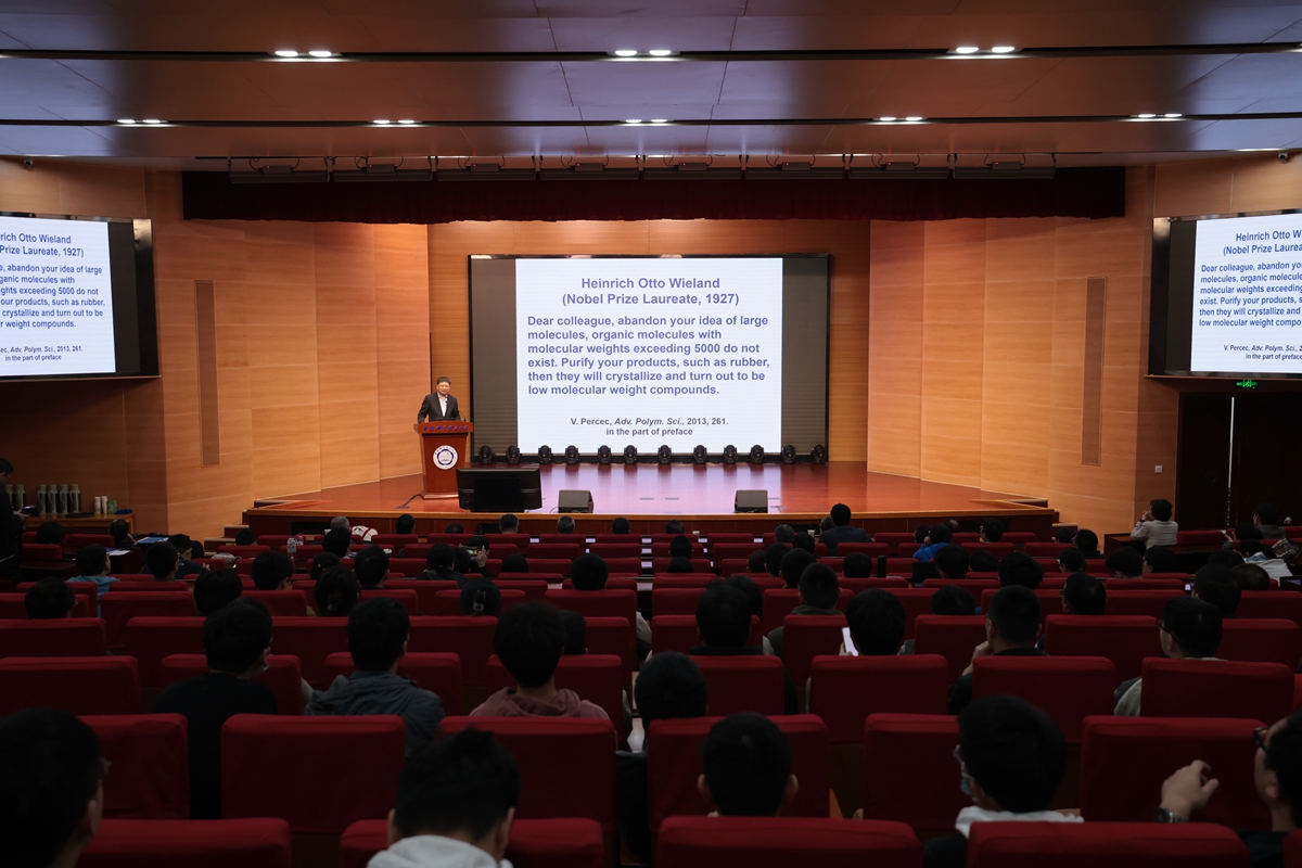 张希应邀做客“郭永怀讲坛”,以“超分子聚合与可循环再生材料”为主题,为中国科学技术大学化学与材料科学学院师生带来精彩的学术报告。张希从介绍相关领域研究历史、讲解科学概念起源入手,通过分享科学故事、阐释研究思路,为在场师生讲述“什么是超分子聚合物?如何制备超分子聚合物?如何表征超分子聚合物?如何制备可循环再生材料?”等问题,帮助在场学生更好地理解超分子聚合物化学这一交叉方向。张希表示,在高分子新百年,高分子人会继续不断提供社会发展需要的各种材料,同时更加关注绿色可持续的问题。超分子聚合物材料具备自修复、可降解、刺激响应、易加工等特性,在智能仿生、生物医用和可循环再生材料等方面具有巨大潜在的应用价值。张希勉励同学们跳出藩篱,打破陈规,通过交流与合作简化难题和提高效率。在与现场学生互动问答的过程中,张希就科研方向选择、科技写作、文献阅读等分享了自己的思考。中国科技大学高分子科学与工程系本科生杨睿智说:“张希老师的报告内容丰富、视角新颖、观点清晰,对精确高分子合成相关研究未来趋势有了新认识,具有重要的启发意义。”
