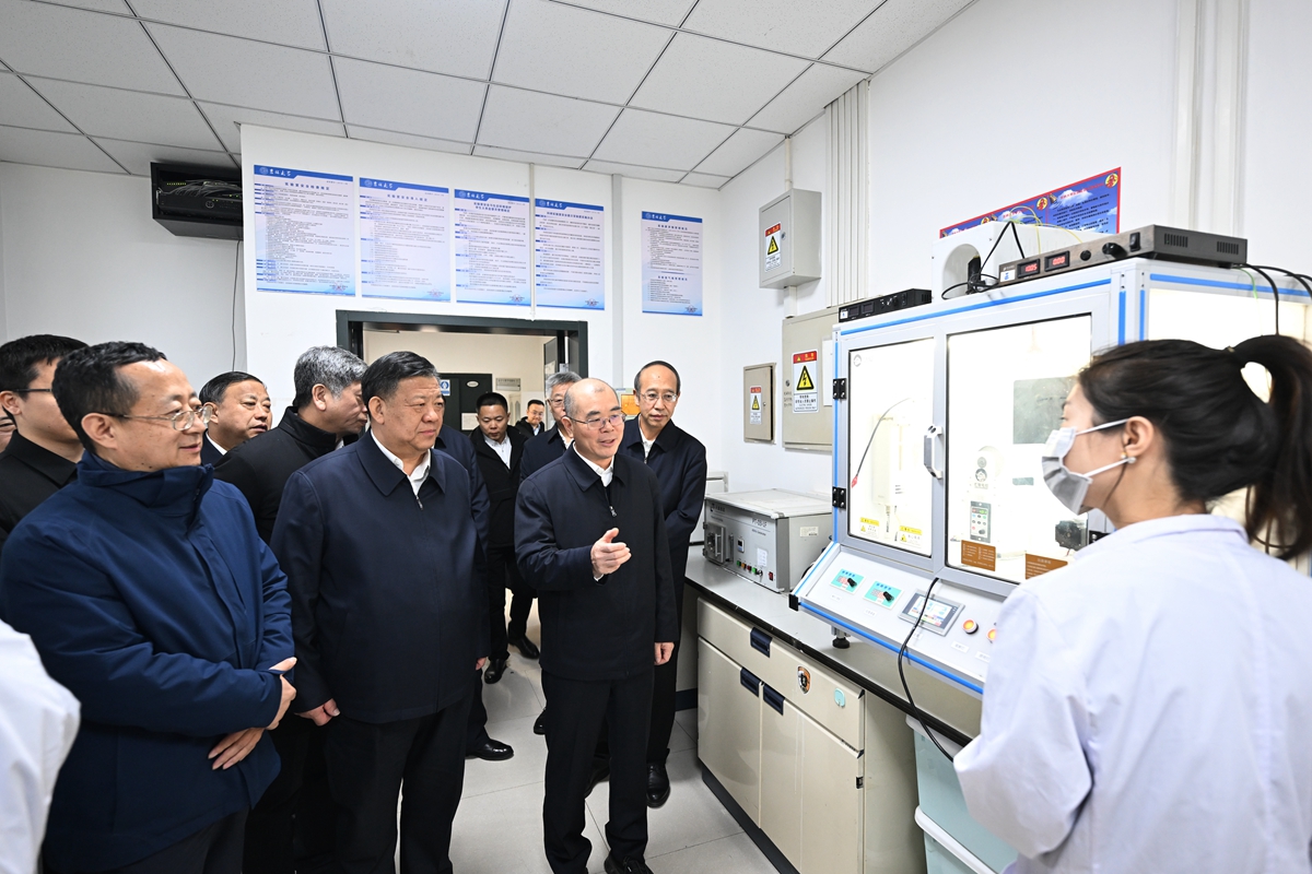 高压科学是吉林大学的优势特色学科,多年来取得了一批国际领先的代表性成果。朱国贤来到吉林大学综合极端条件高压科学中心,调研高温高压大体积材料研究系统建设情况和产学研用融合情况。他指出,吉林大学作为科研资源富集、精英人才荟萃的全国知名高等学府,要全面贯彻习近平总书记关于发展新质生产力的重要论述,紧扣省委工作部署,聚焦深入实施“一主六双”高质量发展战略,充分发挥高校作为人才培养主阵地、科技创新关键主体和引才聚才重要平台的作用,加强科研项目攻关,强化人才队伍建设,加速科技成果由“实验室”走向“应用场”。要充分发挥专门协商机构作用和委员主体作用,突出界别优势,大兴调查研究,积极建言献策,以实际行动助力谱写中国式现代化吉林新篇章。