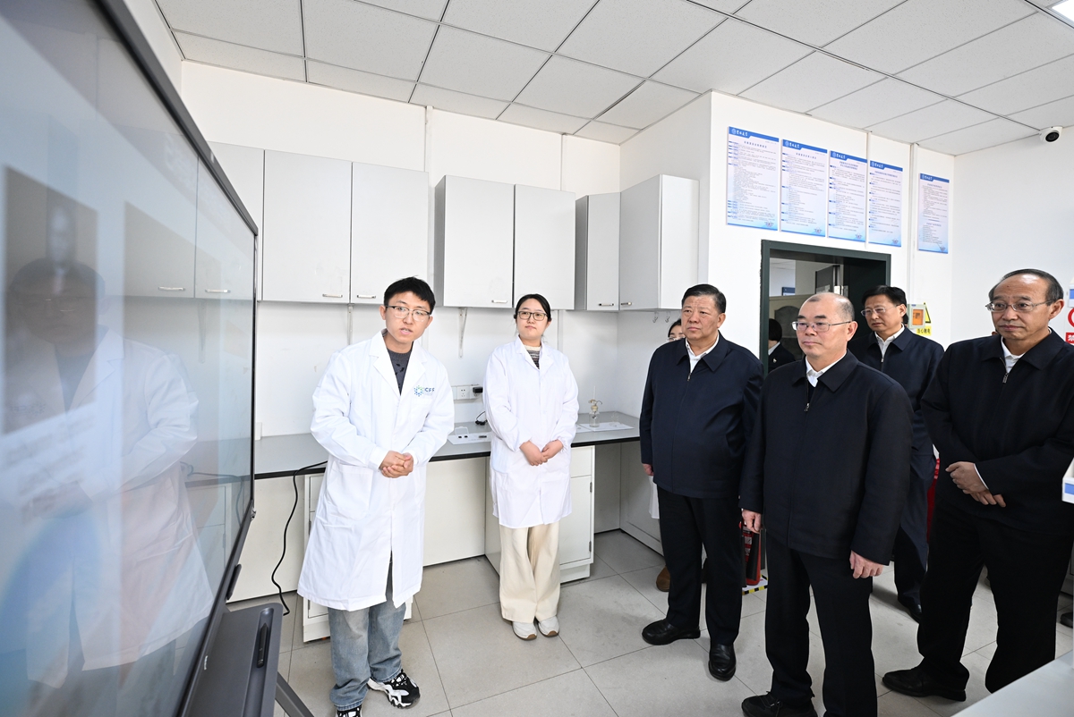 在无机合成与制备化学国家重点实验室和集成光电子学国家重点实验室,朱国贤现场听取实验室负责人关于师资队伍、科研攻关以及成果转化等情况的汇报,参观实验设备并与实验室科研人员亲切交流。朱国贤对两个国家重点实验室取得的一系列科研成果给予了高度评价,希望科研团队继续在关键核心技术攻关、科研成果就地转化等方面发挥更大作用,切实以科技创新推动产业创新,推动更多优质科技成果加快转化为现实生产力、新质生产力,引领带动构建具有吉林特色优势的现代化产业体系,为吉林高质量发展、可持续振兴提供有力支撑。