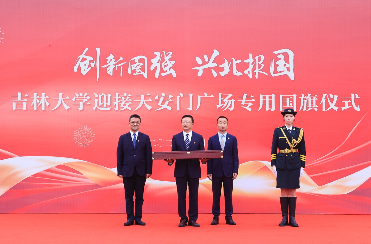【文字/霍睿 图片/方卫东 徐立华】在中华人民共和国成立76周年之际,10月1日,吉林大学举行迎接天安门广场专用国旗仪式,喜迎今年9月16日校庆日当天在天安门广场冉冉升起的五星红旗及指挥刀。仪式由校党委常委、副校长张国兴主持。