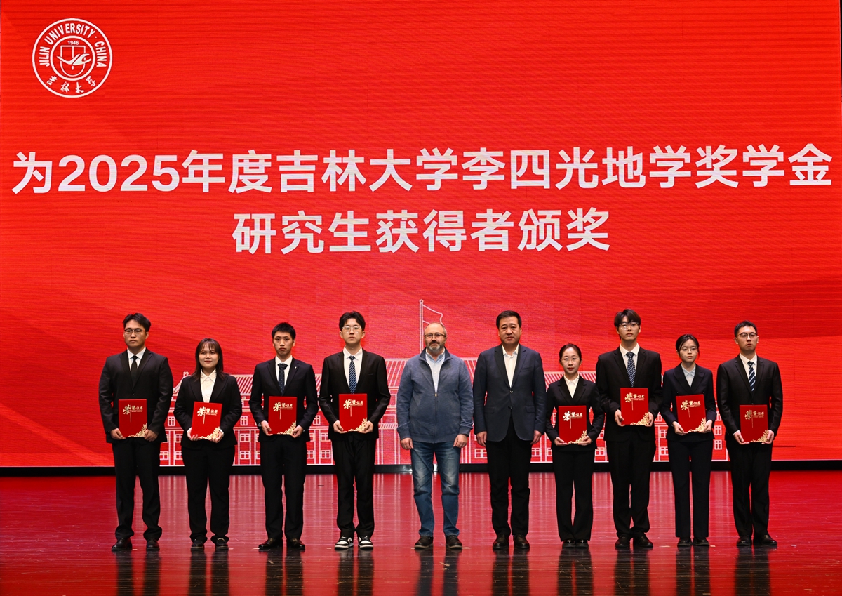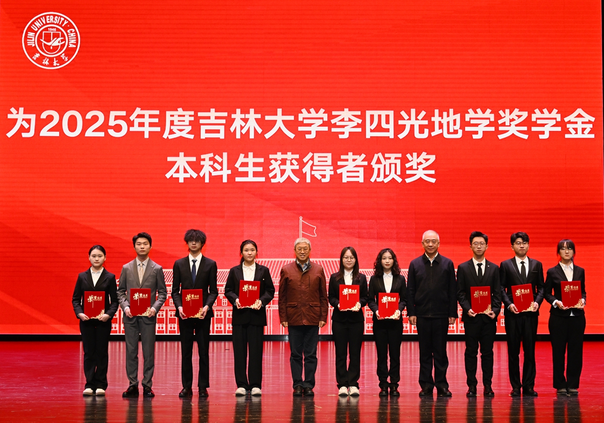 【文字/金光旭 建设工程学院 图片/王元辰】11月22日,2025年度吉林大学李四光地学奖学金、优秀青年教师奖和富德地学奖学金颁奖典礼在中心校区鼎新大讲堂举行。