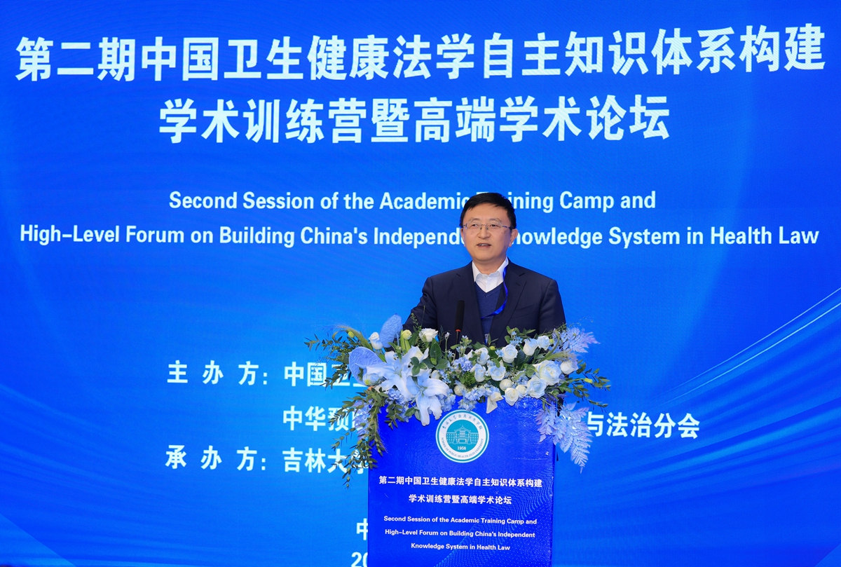 【文字/图片 徐立华】12月6日,第二期中国卫生健康法学自主知识体系构建学术训练营暨高端学术论坛在长春举办。中国卫生法学会会长高春芳(线上),长春市朝阳区区长鲁晓光,吉林大学党委常委、常务副校长蔡立东出席会议并致辞。活动由吉林大学公共卫生学院院长刘雅文主持。