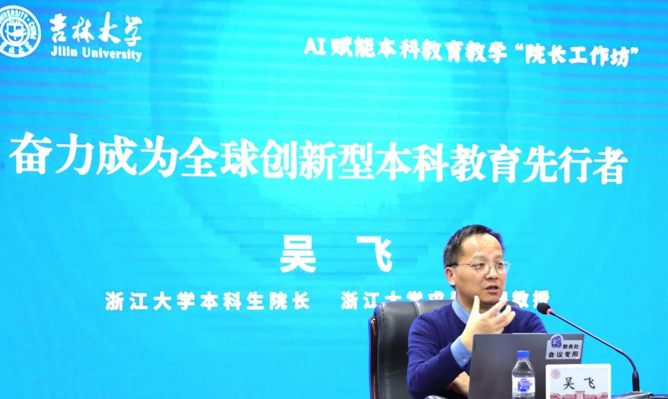 张然对吴飞教授来校传经送宝表达诚挚欢迎和衷心感谢。她指出,报告紧扣人工智能驱动教育深刻变革的时代命题,系统呈现了在课程体系重构、智能平台支撑、交叉融合培养等关键环节的赋能路径与实践方案,具有极强的启发性与借鉴价值。她强调,人工智能开辟了教育发展新路径、塑造了教育发展新优势,各教学单位和广大教师要主动适应人工智能时代的到来,用人工智能技术赋能教育变革,塑造教学形态。要坚持育人为本,围绕立德树人根本任务,构建以学生发展为中心的人工智能教育生态。要坚持守正创新,更新教育理念,重塑教育体系,变革教育模式,拓宽教育内容,优化教育治理。要坚持统筹协同,充分调动产学研各方力量,建立校内外资源整合与高效协同机制。要以人工智能为引擎,推动教育教学的创新发展,书写吉林大学新时代一流本科教育的新篇章。