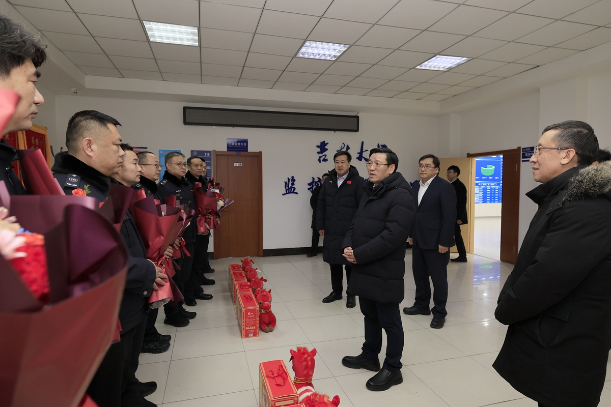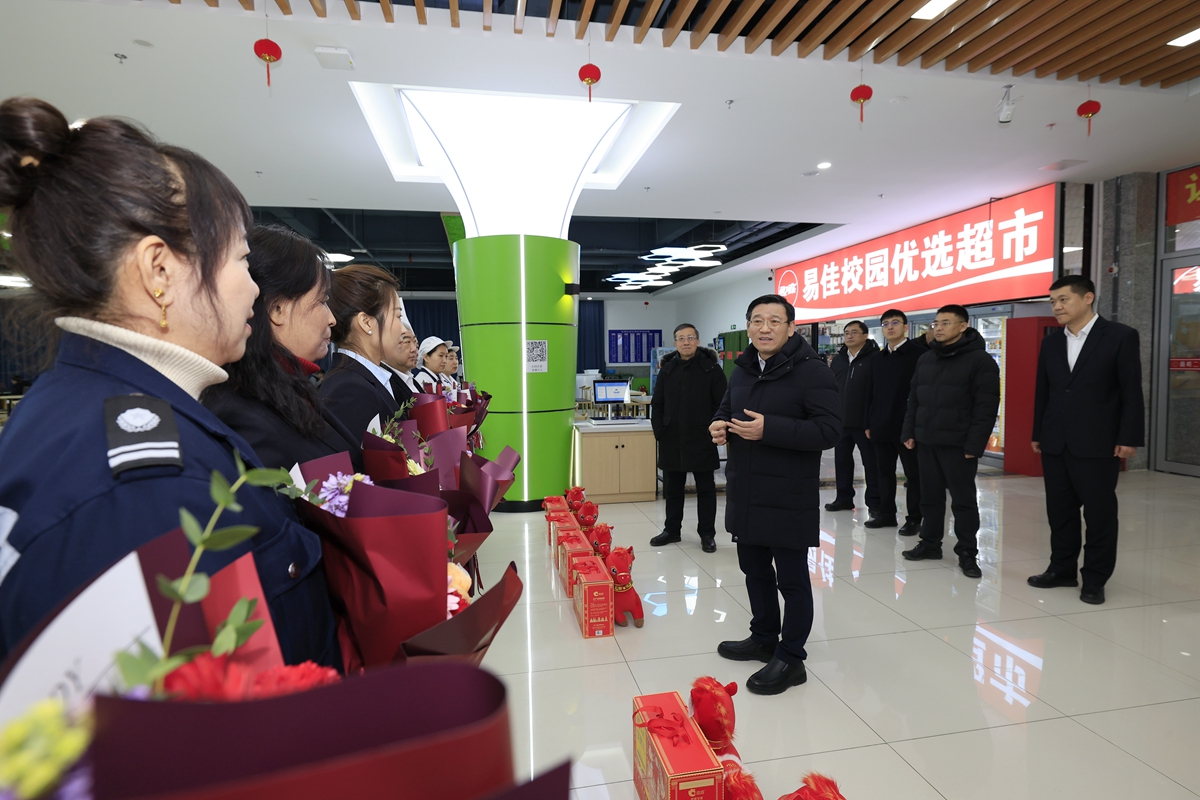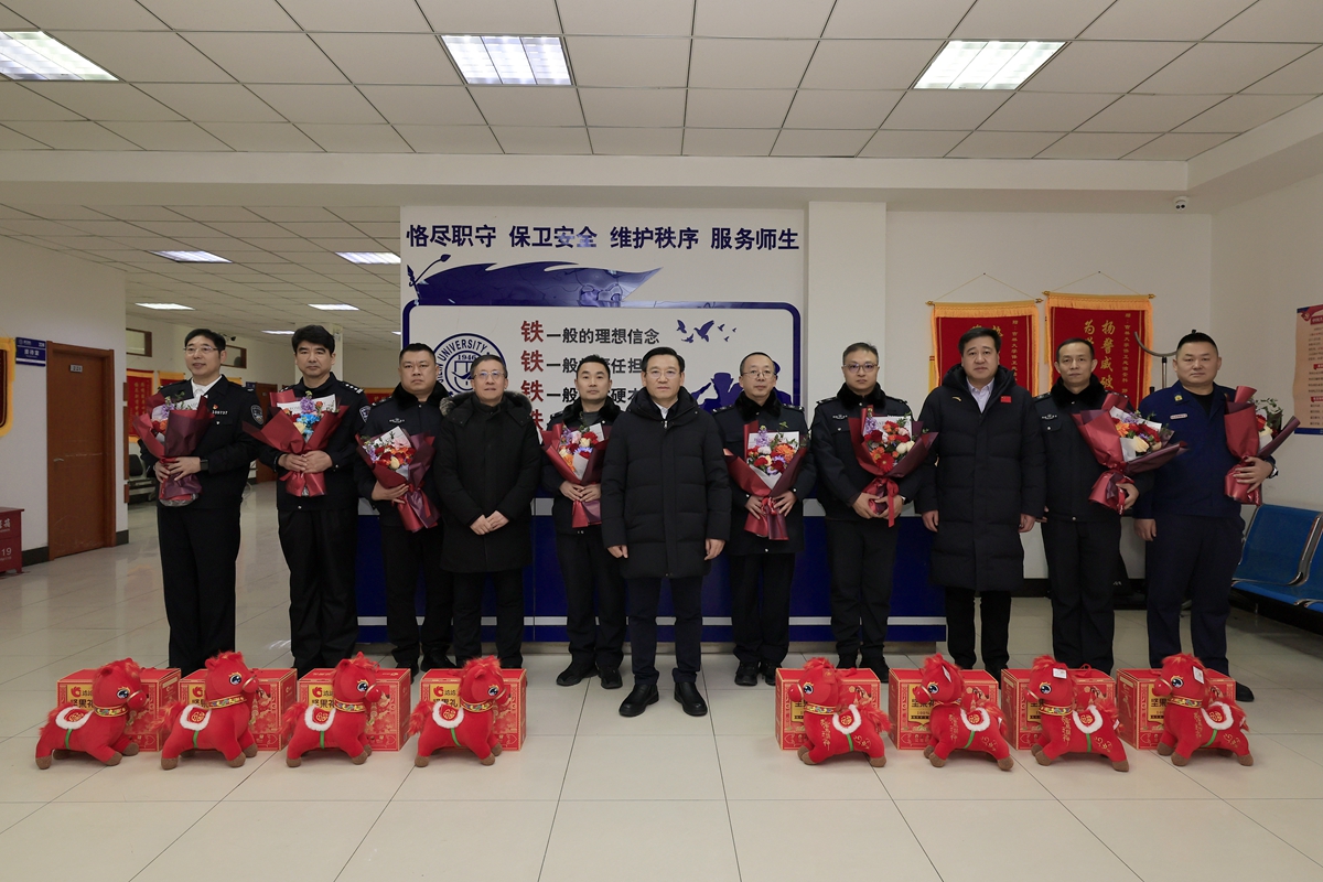 在保卫处,田辉亲切慰问坚守在安全保卫一线的工作人员,对他们默默奉献、为校园安全稳定做出的重要贡献表示感谢。他强调,寒假尤其是春节期间,对安全保卫工作提出了更高要求,必须进一步强化责任意识、提升工作标准,切实加强值班值守、巡逻巡防和应急处置,做到防患于未然。在监控指挥中心,田辉听取校园假期安保工作及安全信息化建设汇报。他强调,要充分发挥技术监控效能,做到风险早发现、隐患早消除、事端早处置,全力保障校园安全稳定。