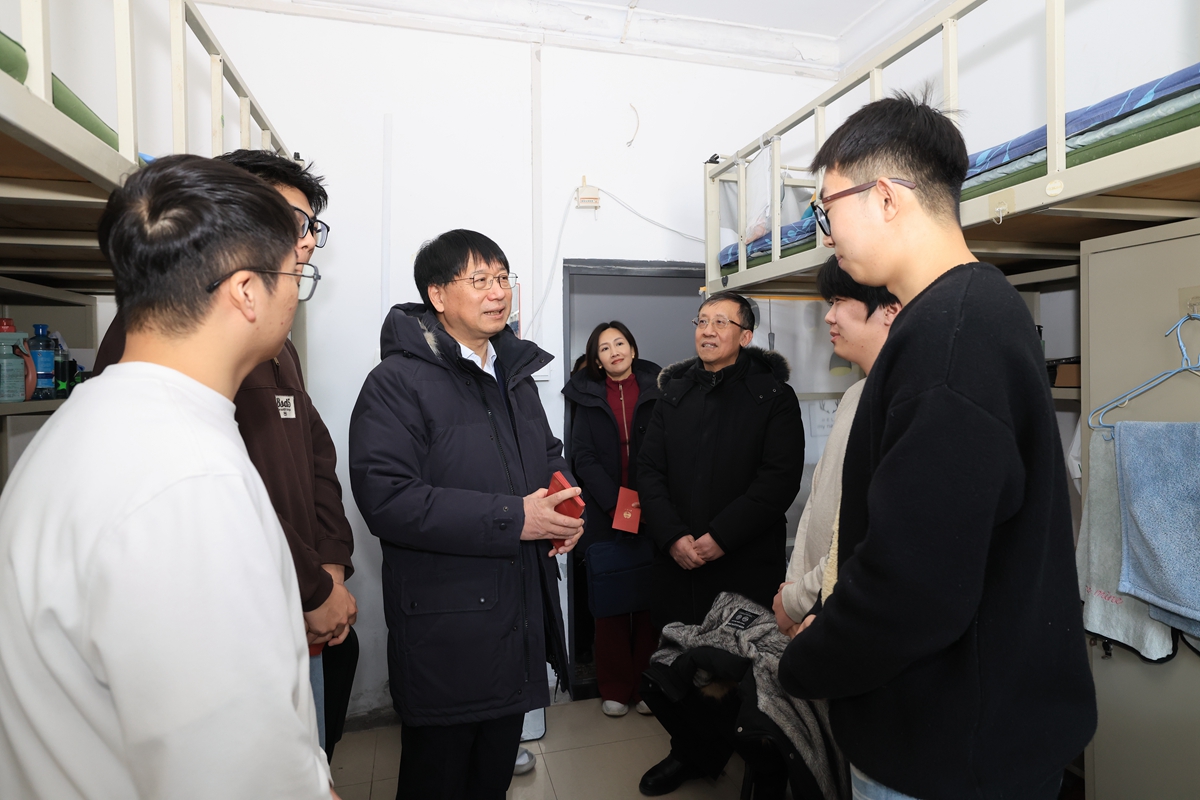 【文字/饶明月 图片/方卫东 徐立华】1月21日,校长张希带队赴各校区走访图书馆、体育馆、实验室、学生食堂、学生公寓等重点场所,检查寒假期间相关工作准备情况,并看望慰问在校师生。