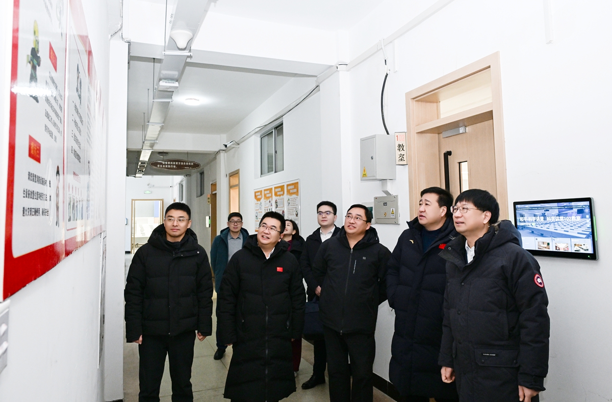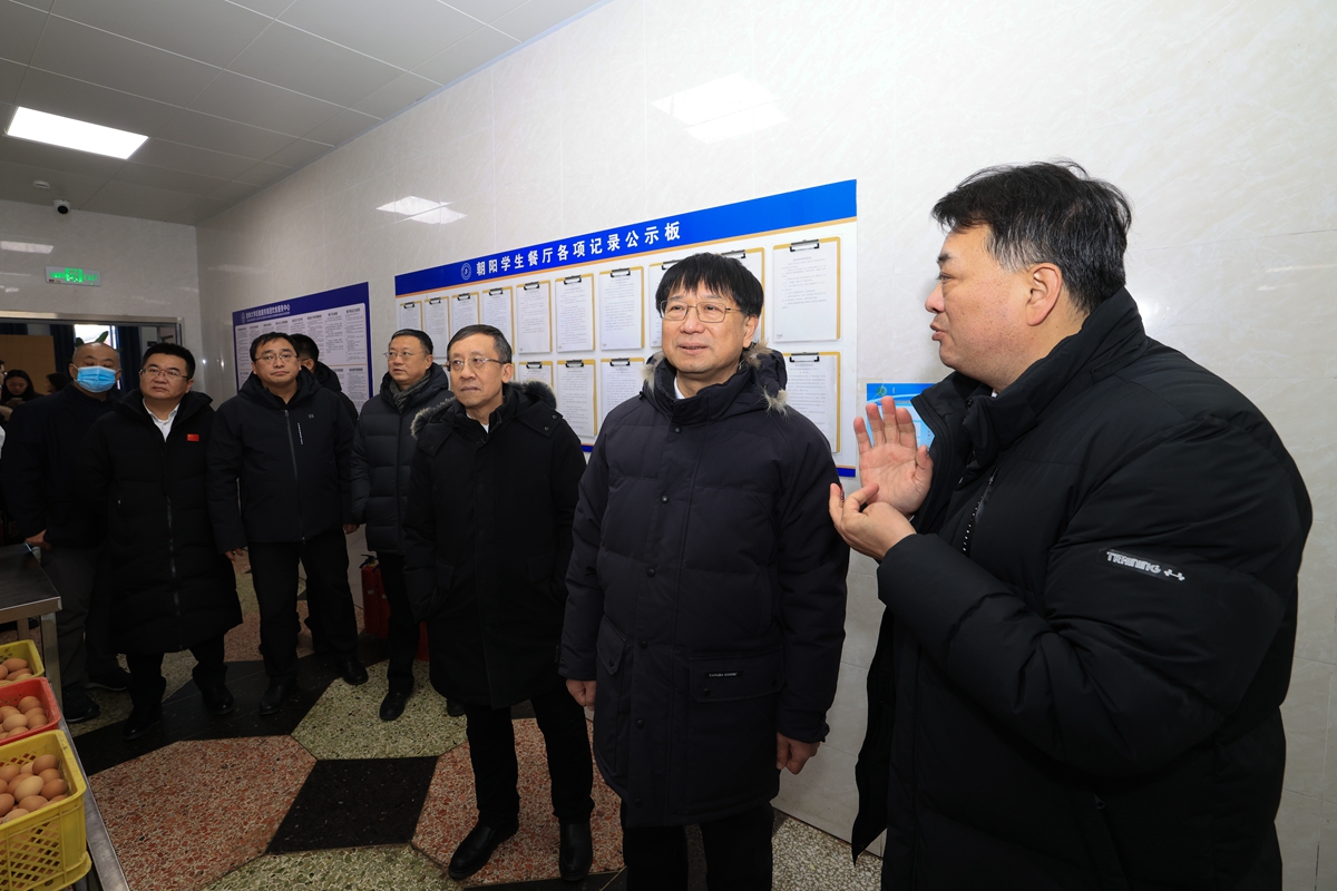 在朝阳校区,张希检查科研楼(黄大年楼)建设进展与“三化”教室建设情况,强调家具采购应注重环保,为师生营造健康舒适的教学环境。随后,他走进朝阳校区食堂,检查寒假期间食堂运行保障与卫生安全等情况,听取除夕年夜饭及春节期间就餐保障情况的汇报。张希指出,要严格把控食材来源,实现全程可溯源,全力保障饮食安全与服务质量。