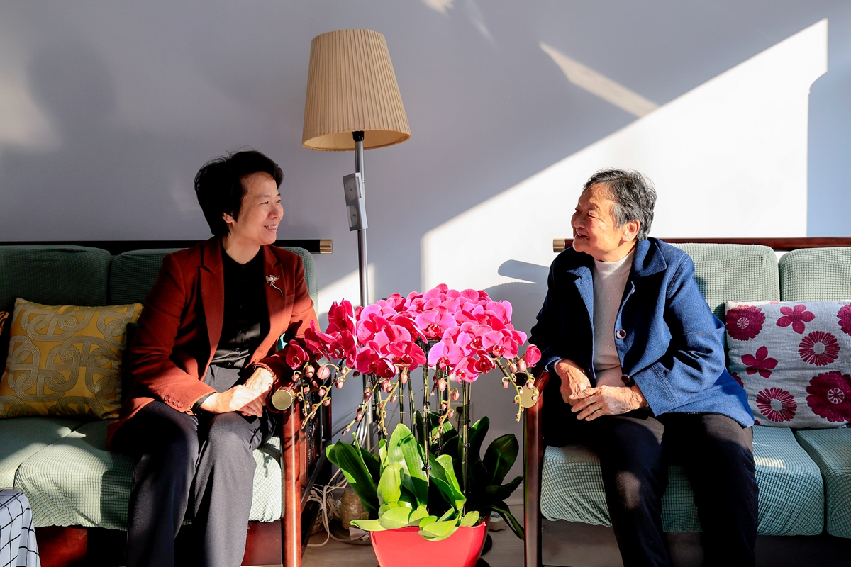 在林学钰家中,吴海英关切询问她的身体和生活情况,对她数十年来深耕科研、教书育人,为国家特别是吉林省发展作出的卓越贡献表示感谢。吴海英向林学钰院士重点传达了习近平总书记在长春听取省委、省政府工作汇报时发表的重要讲话精神。吴海英强调,当前吉林正处于全面振兴的关键时期,迫切需要广大科技工作者贡献智慧力量。希望林学钰院士保重身体,在学科发展、人才培养等方面多提宝贵意见。同时要求相关部门持续做好服务保障,为院士及科研团队潜心科研、多出成果创造更好条件。