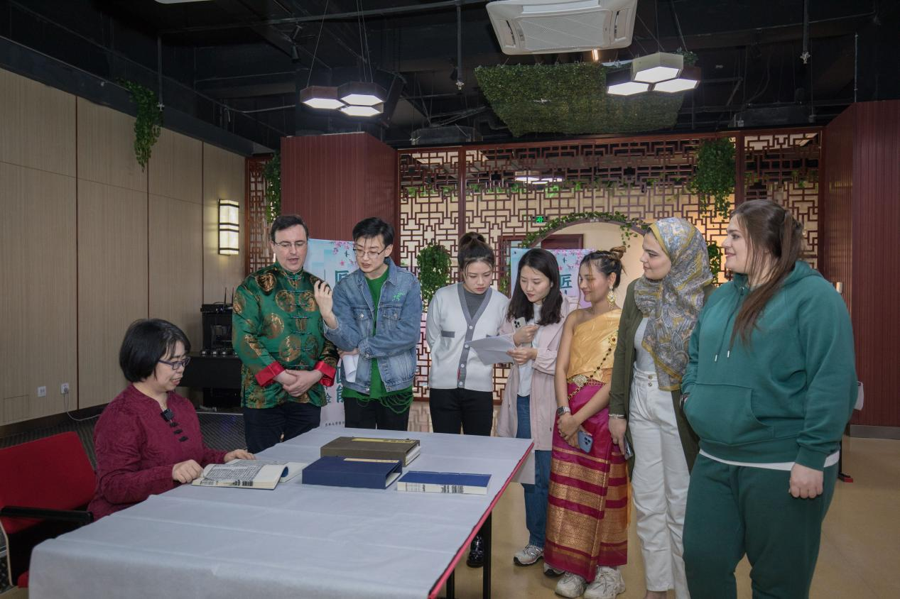 王丽华和同事们充分利用其丰富的典籍馆藏资源和学科专业优势,面向海内外师生开展一系列文化视频录制、实地参观学习和技艺实践体验活动。特别是,他们定期组织外国留学生与感兴趣的同学们开展实践体验,动手体验古籍修复、雕版印刷、碑帖传拓、植物型染、线装书制作等中华传统技艺。
