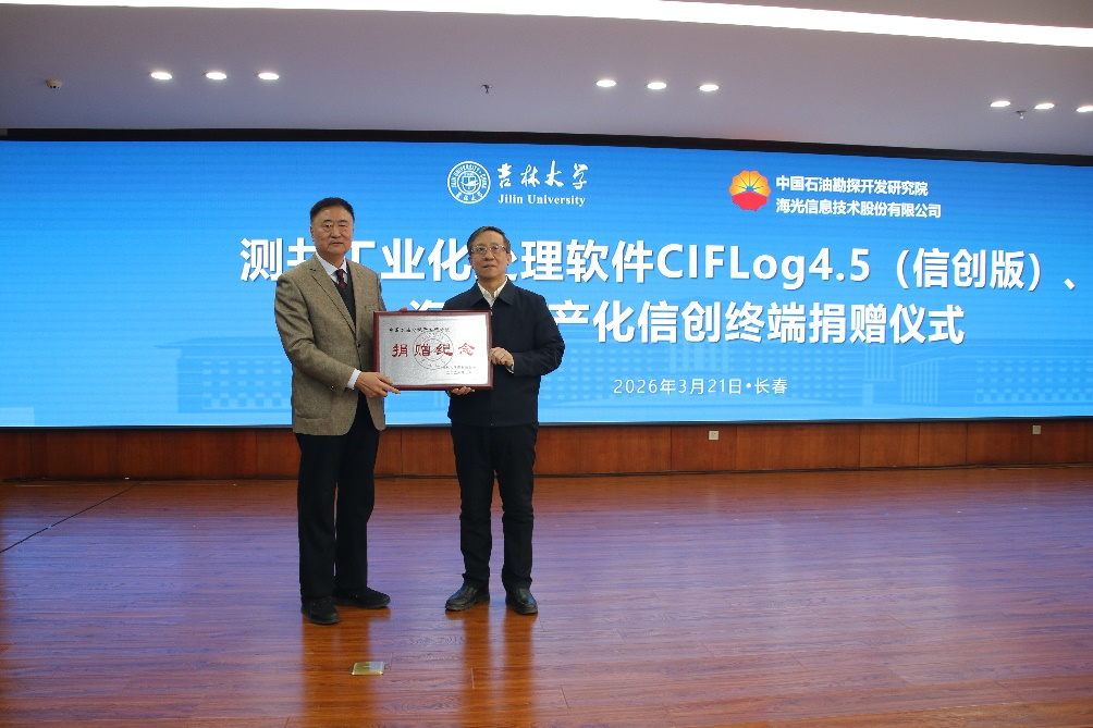 讲座结束后,边铁向李宁教授颁发鼎新讲座纪念牌。李宁教授还向吉林大学捐赠了CIFLog4.5(信创版)海光国产化信创终端,助力我校国产化教学平台建设和实践教学与人才培养。