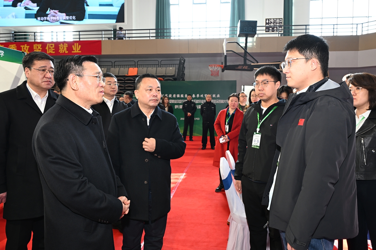田辉表示,促进毕业生就业是讲政治、保民生、促发展的重要工作。要深入学习贯彻习近平总书记重要指示精神,牢固树立和践行正确政绩观,以更加积极的态度、更加务实的作风、更加有力的举措,促进毕业生高质量充分就业。要紧密结合国家战略需求,优化专业设置,提升人才培养质量,深化与行业、企业的对接合作,通过举办专场招聘会等方式,为毕业生搭建就业平台。要教育引导同学们树立正确的就业观、择业观,服务强国建设,实现个人理想。要加大困难毕业生兜底帮扶力度,落实“一人一策”帮扶责任。