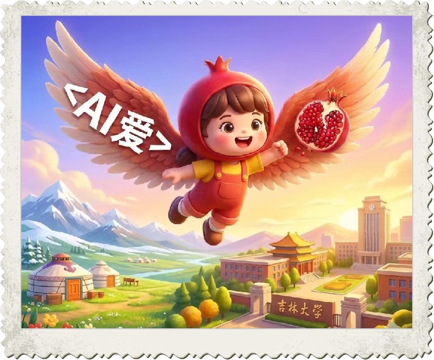 这只身着火红石榴服饰的卡通形象叫“灵灵”,是“石榴之灵”的化身,更是民族团结进步的生动符号。它是吉林大学预科教育学院的吉祥物IP形象。“灵灵”有两只翅膀,右边那只翅膀上面有一颗红石榴,代表铸牢中华民族共同体意识;左边那只翅膀,代表既要有人工智能的加持,也要心中有爱。学院希望这两只隐形的翅膀永远伴随着学生,成就学生翱翔天际的能力。