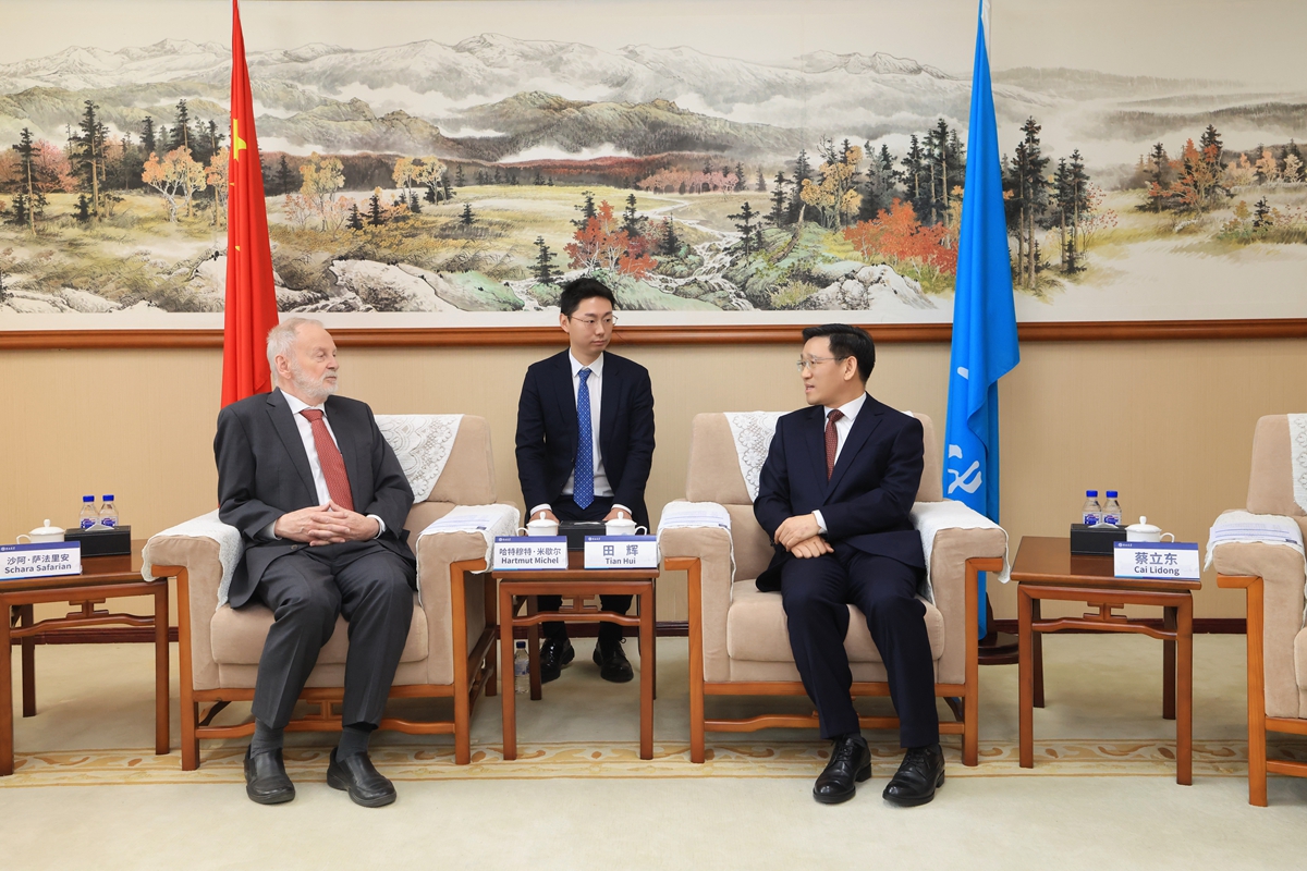 田辉代表吉林大学和张希校长对米歇尔教授的到来表示欢迎,并对他长期以来在生物学领域取得的卓越成就表示赞赏。田辉表示,实现中国特色、世界一流大学建设目标,关键要靠一流师资队伍。当前,学校正在深入实施“战略人才汇聚行动”,大力培育引进战略科学家,为学校加速发展、全面跃升提供坚强人才保证和智力支撑。米歇尔教授作为国际顶尖科学家全职加盟吉林大学,是学校深入实施人才强校战略的重要成果,必将为学校相关学科发展和高水平科研合作注入强劲动力。他表示,学校将大力支持米歇尔教授团队工作,希望米歇尔教授充分发挥中德友好使者的桥梁纽带作用和学术引领作用,带领团队实现科技创新突破,带动青年科技人才成长,助推吉林大学与世界一流大学在科研、人才、学科建设等方面开展更高水平的国际交流与合作。
