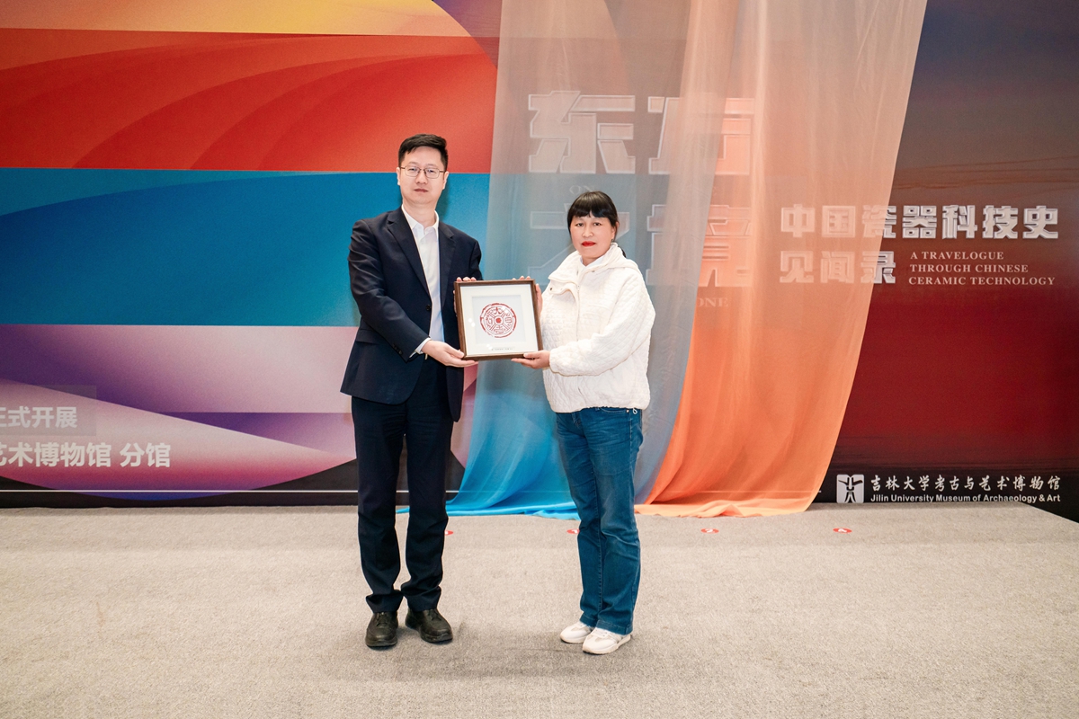 开幕式上,张希、丁世海、张纪军、寇婉琼共同为“东方之境——中国瓷器科技史见闻录”展览揭幕。德化县陶瓷博物馆研究员陈丽芳与吉林大学考古学院院长、考古与艺术博物馆馆长段天璟代表双方互赠纪念品。