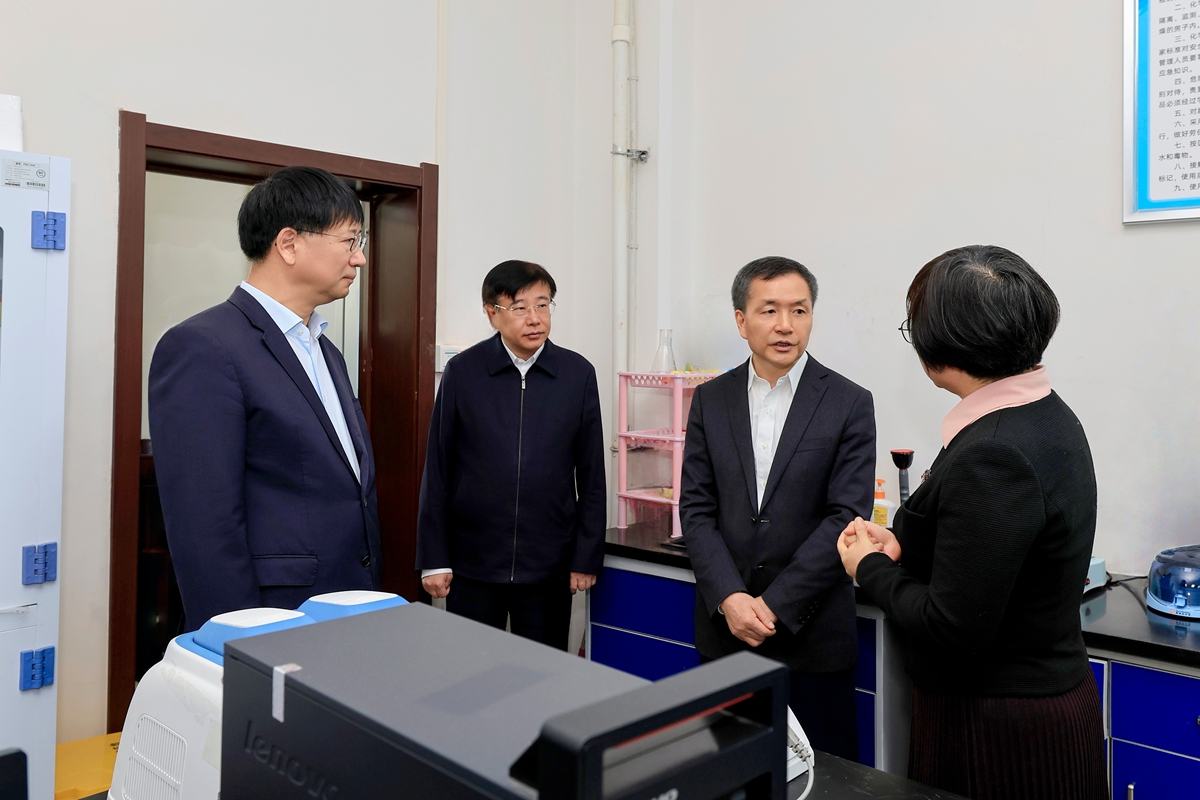 在公共卫生学院,沈洪兵一行详细了解学院建设情况,实地调研了国家卫生健康委员会放射生物学实验室,交流了高水平公共卫生学院建设和公共卫生人才培养问题。