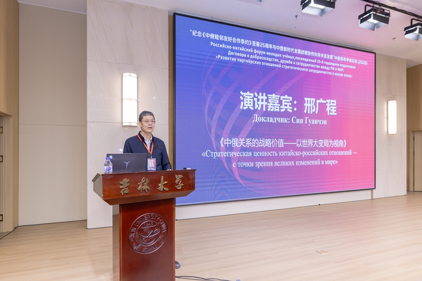 【供稿:东北亚学院 东北亚研究院】4月23日,“纪念《中俄睦邻友好合作条约》签署25周年与中俄新时代全面战略协作伙伴关系发展——中俄青年学者论坛(2026)”在吉林大学举行。本次论坛由吉林大学东北亚研究中心、东北亚研究院、东北与东北亚研究院、社会科学研究院、俄罗斯科学院中国与现代亚洲研究所共同主办,《东北亚论坛》编辑部、吉林大学俄罗斯研究所协办。吉林大学党委副书记、组织部部长姚毓春,俄罗斯科学院中国与现代亚洲研究所所长、俄中友好协会副主席基里尔·巴巴耶夫,俄罗斯联邦驻沈阳总领事馆总领事娜塔莉亚·普雷日科娃,中国社会科学院学部委员邢广程,吉林省外事办公室副主任赵树新,吉林省教育厅副厅长周正朝等中外嘉宾出席论坛。论坛开幕式由吉林大学社会科学研究院院长曲红梅主持。
