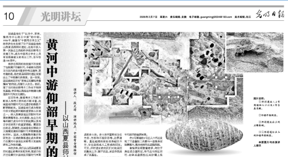 光明日报整版推出吉林大学段天璟演讲稿《黄河中游仰韶早期的史前生业与聚落——以山西夏县师村遗址为例》 2026-02-08