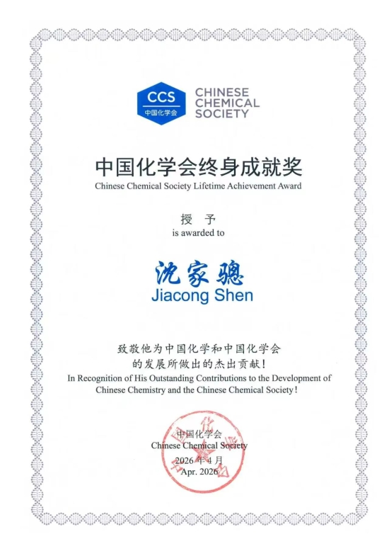 中国科学院院士、吉林大学化学学院沈家骢教授荣获第五届中国化学会终身成就奖 2026-04-12